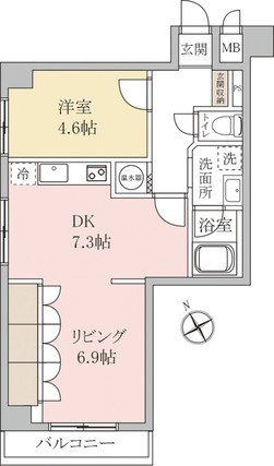| 専有面積 | 46.38m2(壁芯) | バルコニー面積 | 3.6m2 |