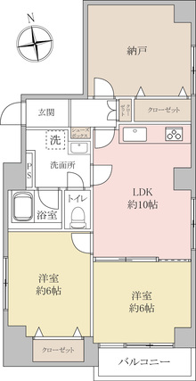 | 専有面積 | 61.92m2(壁芯) | バルコニー面積 | 2.81m2 |