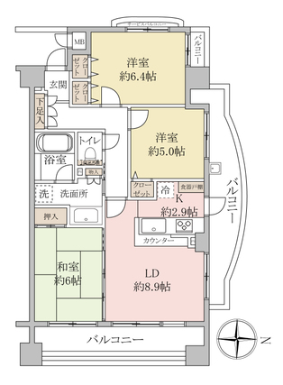 | 専有面積 | 68.01m2(壁芯) | バルコニー面積 | 11.97m2 |