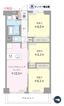 | 専有面積 | 66.45m2(壁芯) | バルコニー面積 | 8.4m2 |