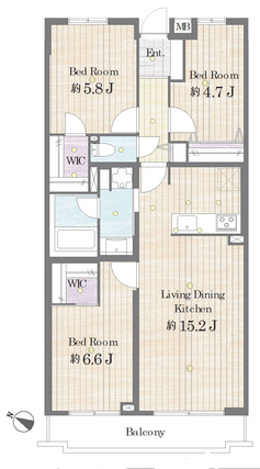 | 専有面積 | 70.65m2(壁芯) | バルコニー面積 | 6.5m2 |