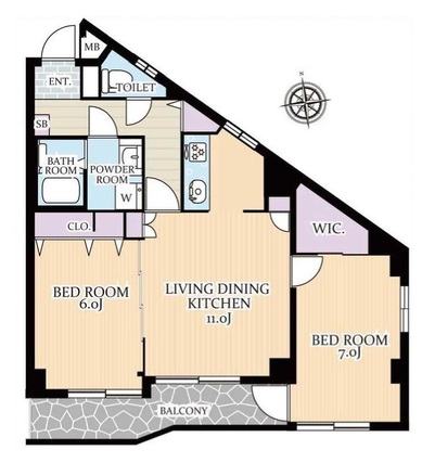 | 専有面積 | 59.31m2(壁芯) | バルコニー面積 | 7.02m2 |