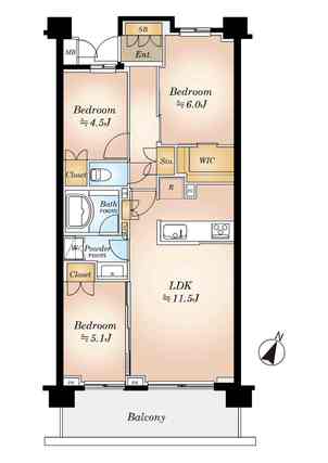 | 専有面積 | 68.69m2(壁芯) | バルコニー面積 | 10.8m2 |