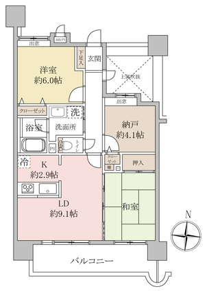 | 専有面積 | 62.75m2(壁芯) | バルコニー面積 | 9.64m2 |