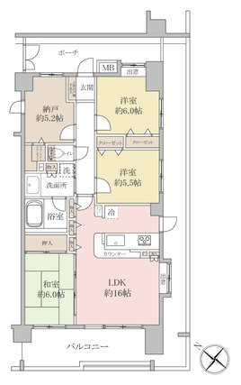 | 専有面積 | 85.56m2(壁芯) | バルコニー面積 | 33.2m2 |