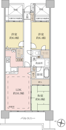 | 専有面積 | 80.2m2(壁芯) | バルコニー面積 | 12.04m2 |