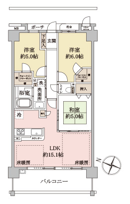 | 専有面積 | 68.31m2(壁芯) | バルコニー面積 | 12.03m2 |