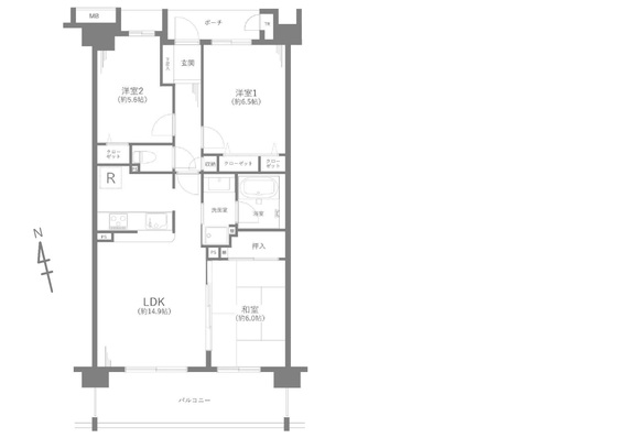 | 専有面積 | 71m2(壁芯) | バルコニー面積 | 12.16m2 |