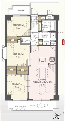 | 専有面積 | 66.15m2(壁芯) | バルコニー面積 | 10.69m2 |