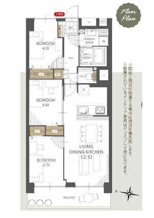 | 専有面積 | 60.5m2(壁芯) | バルコニー面積 | 7.15m2 |