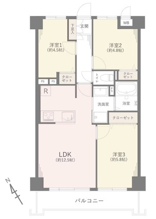 | 専有面積 | 60m2(壁芯) | バルコニー面積 | 7.44m2 |