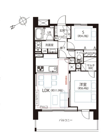 | 専有面積 | 54.21m2(壁芯) | バルコニー面積 | 11.52m2 |