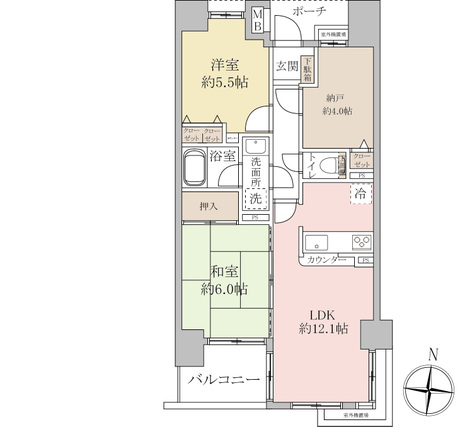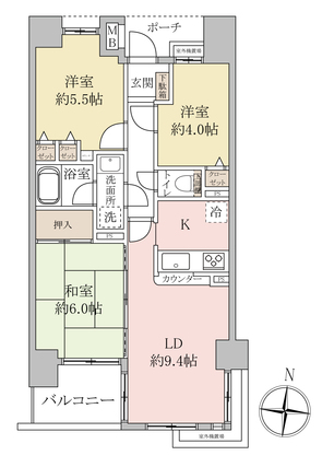 | 専有面積 | 59.93m2(壁芯) | バルコニー面積 | 5.22m2 |