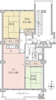 | 専有面積 | 76.74m2(壁芯) | バルコニー面積 | 10.87m2 |