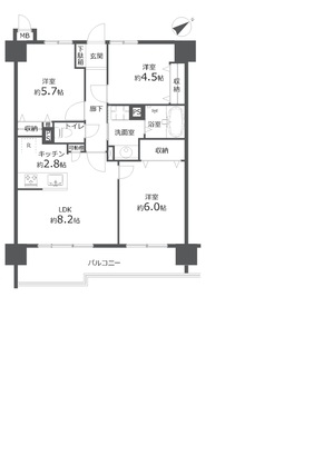 | 専有面積 | 61.62m2(壁芯) | バルコニー面積 | 9.9m2 |