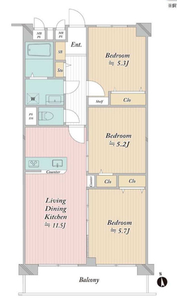 | 専有面積 | 63.12m2(壁芯) | バルコニー面積 | 7.12m2 |