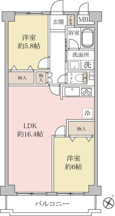 | 専有面積 | 62.72m2(壁芯) | バルコニー面積 | 6.63m2 |