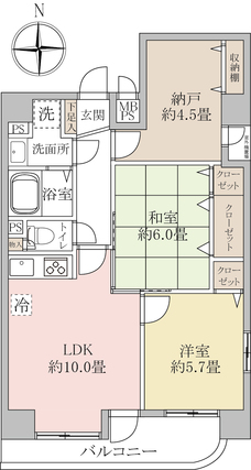 | 専有面積 | 62.22m2(壁芯) | バルコニー面積 | 6.93m2 |