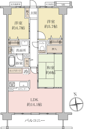 | 専有面積 | 67.6m2(壁芯) | バルコニー面積 | 9m2 |