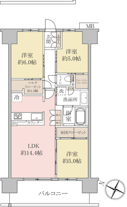 | 専有面積 | 70.11m2(壁芯) | バルコニー面積 | 12.3m2 |
