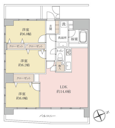 | 専有面積 | 75.06m2(壁芯) | バルコニー面積 | 21m2 |