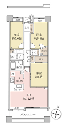 | 専有面積 | 68.52m2(壁芯) | バルコニー面積 | 11.4m2 |