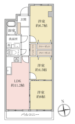 | 専有面積 | 64.82m2(壁芯) | バルコニー面積 | 6.41m2 |