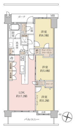 | 専有面積 | 75.02m2(壁芯) | バルコニー面積 | 11.16m2 |