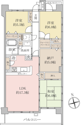 | 専有面積 | 87.13m2(壁芯) | バルコニー面積 | 14.84m2 |