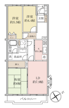 | 専有面積 | 66.08m2(壁芯) | バルコニー面積 | 5.73m2 |
