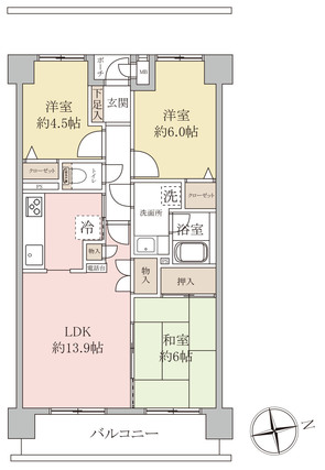 | 専有面積 | 67.12m2(壁芯) | バルコニー面積 | 9.3m2 |