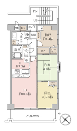 | 専有面積 | 63.72m2(壁芯) | バルコニー面積 | 9.58m2 |