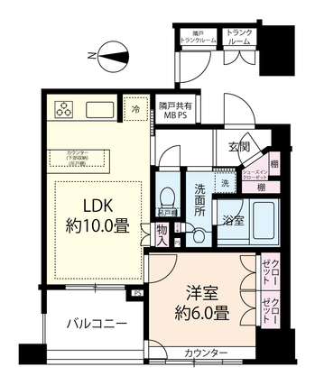 | 専有面積 | 41.56m2(壁芯) | バルコニー面積 | 5.4m2 |