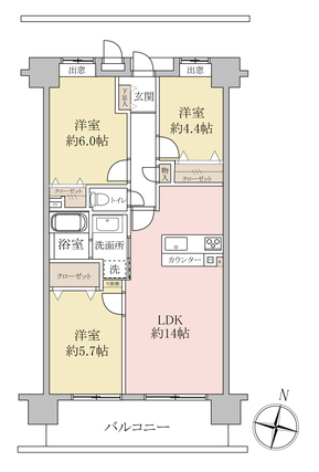 | 専有面積 | 66.96m2(壁芯) | バルコニー面積 | 10.45m2 |