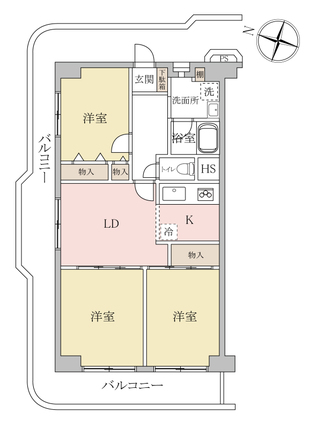 | 専有面積 | 66m2(壁芯) | バルコニー面積 | 26.52m2 |