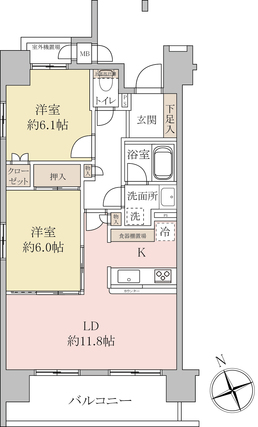 | 専有面積 | 61.24m2(壁芯) | バルコニー面積 | 10.8m2 |