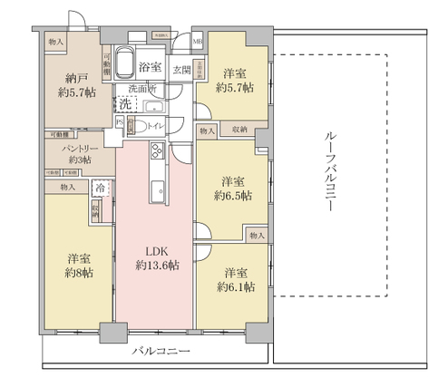 | 専有面積 | 93.77m2(壁芯) | バルコニー面積 | 10.6m2 |