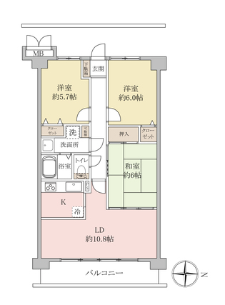 | 専有面積 | 68.44m2(壁芯) | バルコニー面積 | 9.13m2 |