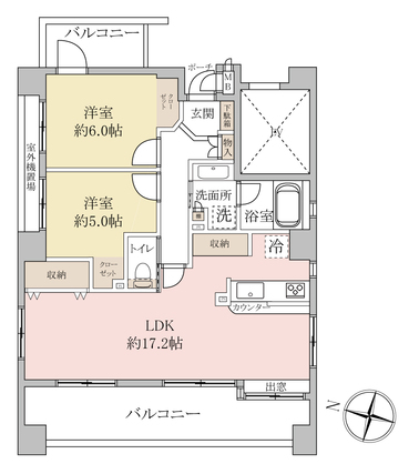 | 専有面積 | 65.27m2(壁芯) | バルコニー面積 | 20.88m2 |