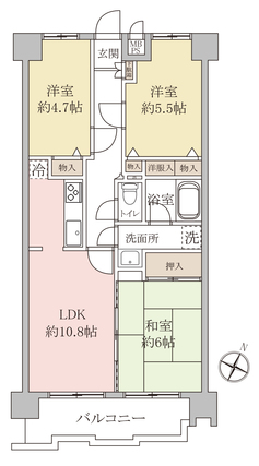 | 専有面積 | 62.7m2(壁芯) | バルコニー面積 | 7.33m2 |