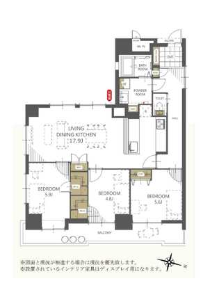 | 専有面積 | 86.44m2(壁芯) | バルコニー面積 | 13.33m2 |