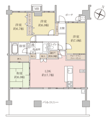 | 専有面積 | 100.58m2(壁芯) | バルコニー面積 | 38.43m2 |