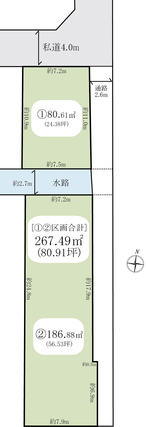 | 建築条件 | 無し | 接道状況 | 一方 北側 間口7.2m 私道 幅4.0m |