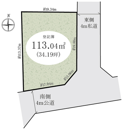 | 土地面積 | 113.04m2(公簿) | 坪数 | 34.19坪 |
