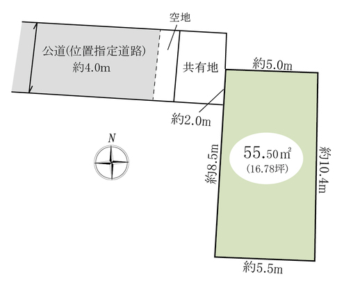 | 土地面積 | 55.5m2(公簿) | 坪数 | 16.79坪 |