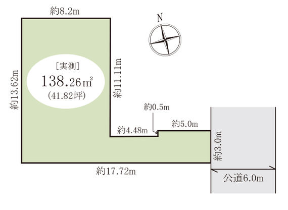 | 土地面積 | 138.26m2(実測) | 坪数 | 41.82坪 |