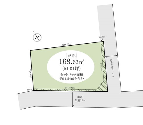 | 私道負担 | 私道負担:無 セットバック量:23.4㎡ |