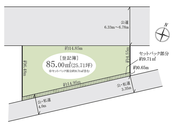 | 土地面積 | 85m2(公簿) | 坪数 | 25.71坪 |