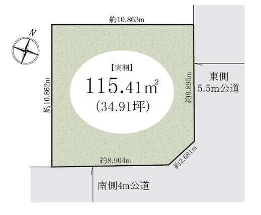 | 土地面積 | 115.41m2(公簿) | 坪数 | 34.91坪 |