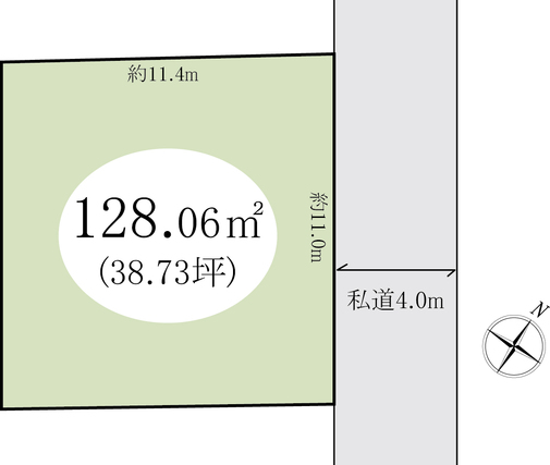 | 土地面積 | 128.06m2(公簿) | 坪数 | 38.74坪 |